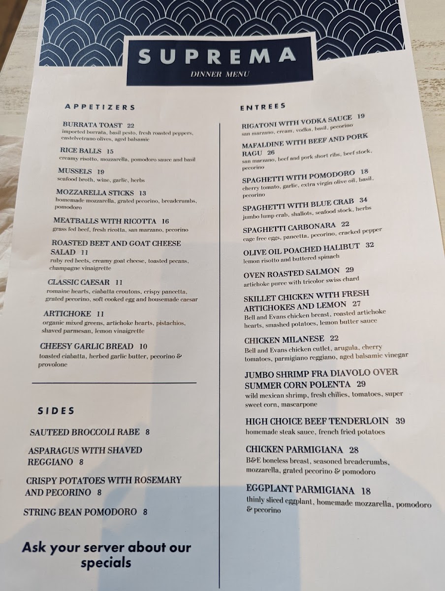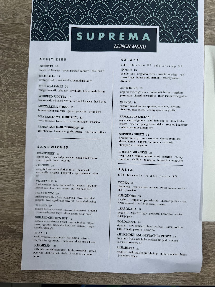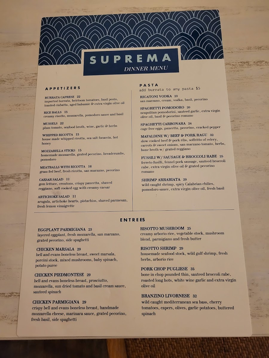 Whether you're savoring a plate of pasta al dente or indulging in mouthwatering desserts, Suprema promises a culinary experience that embraces tradition and quality. Don’t miss out on this authentic BYOB haven!